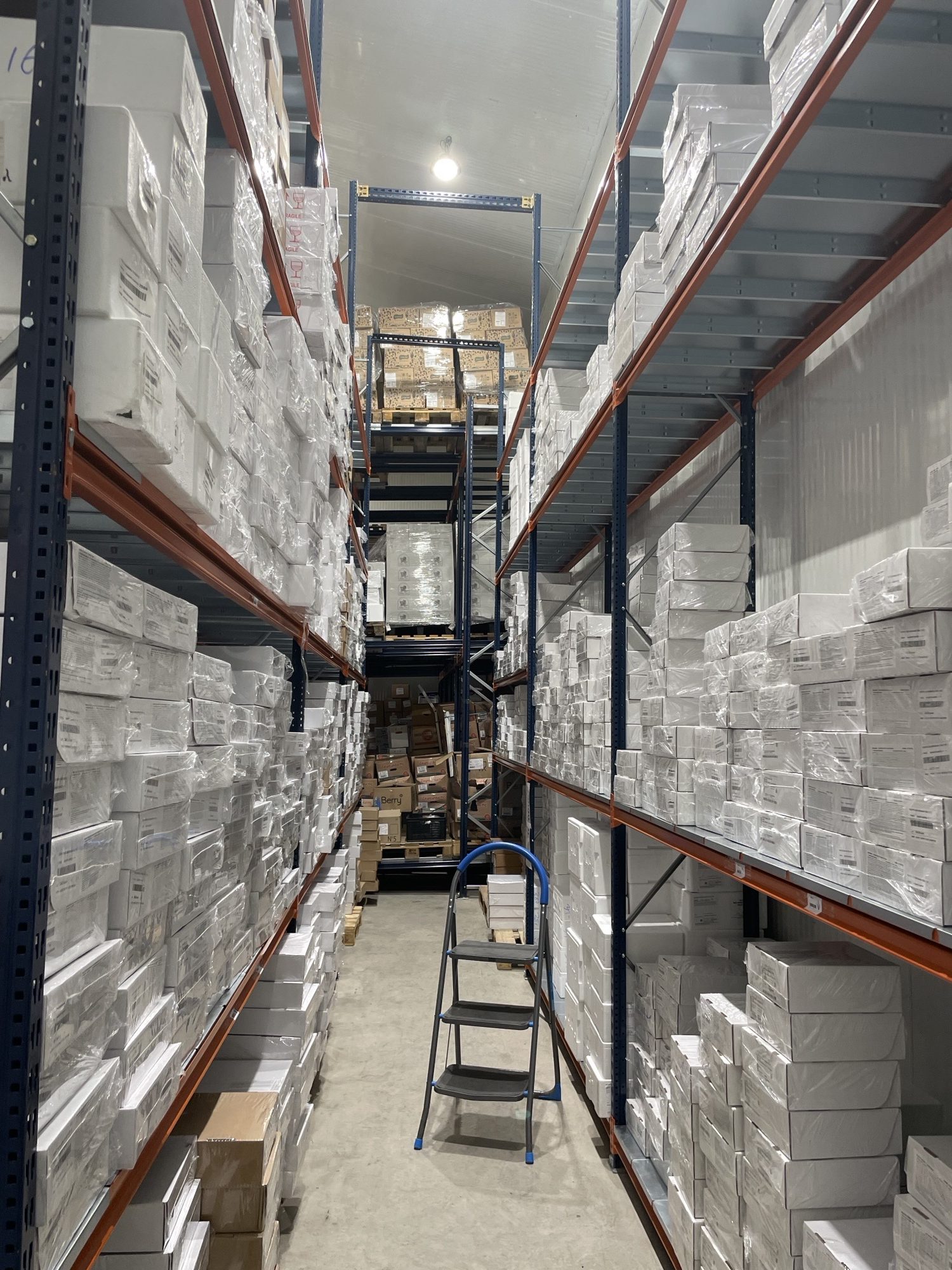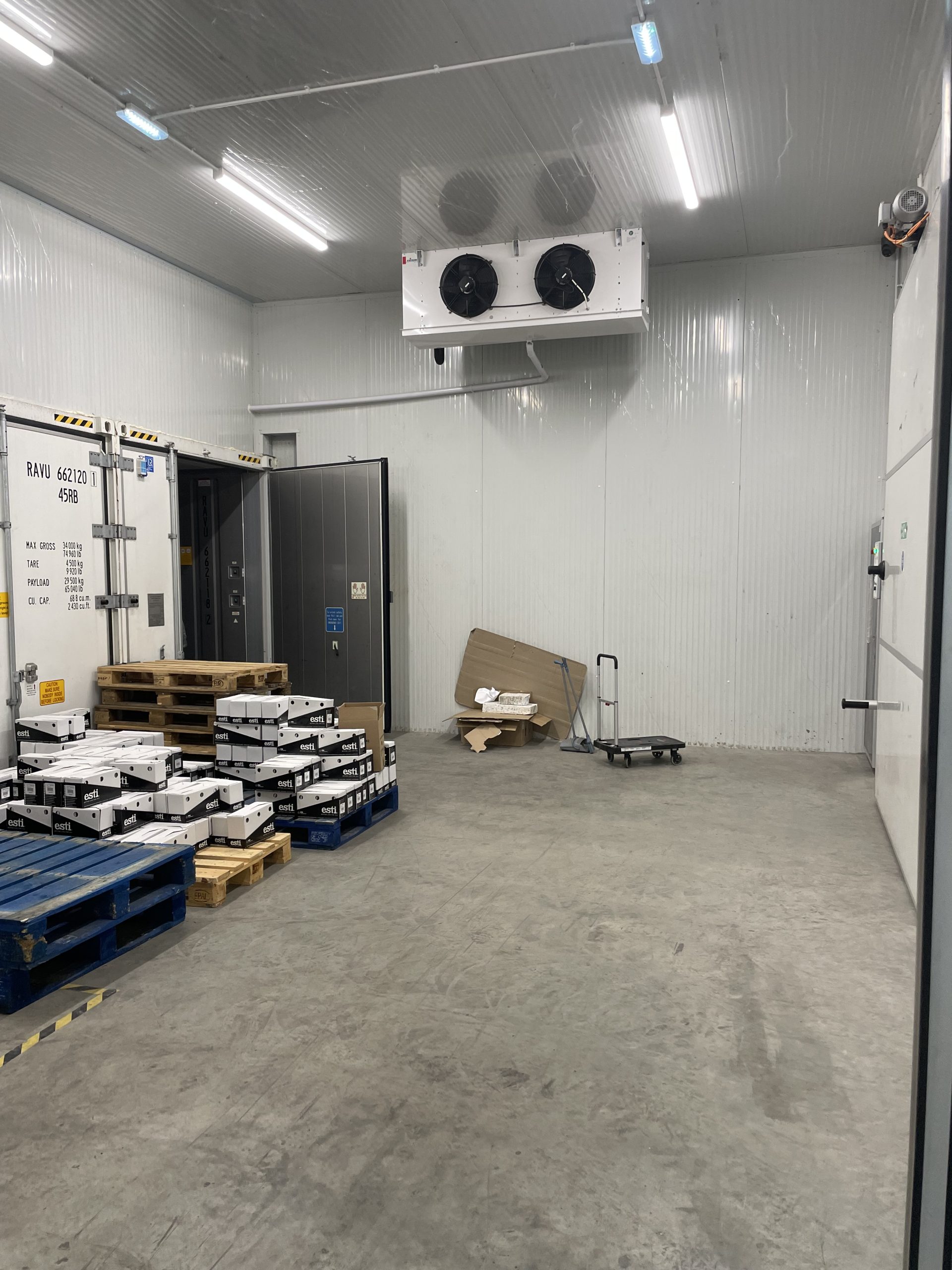 Internally, the unit has been customized with a mezzanine, a cold room, and an ancillary area, along with two refrigerated containers connected to the building for added cold storage. There is parking and shared access at the front, as well as a modular unit that includes ladies’ and gents’ restrooms, a kitchen, and office space.